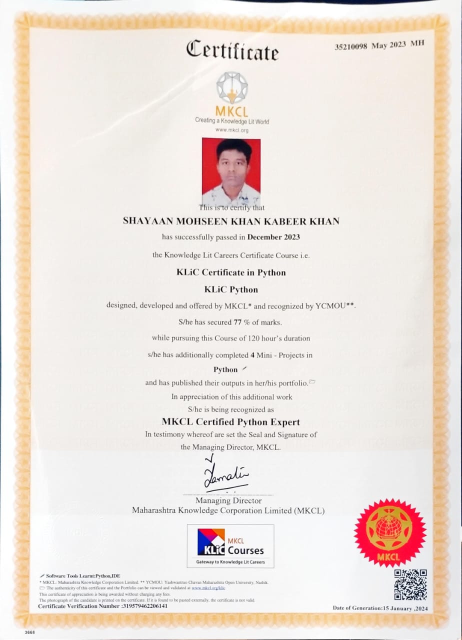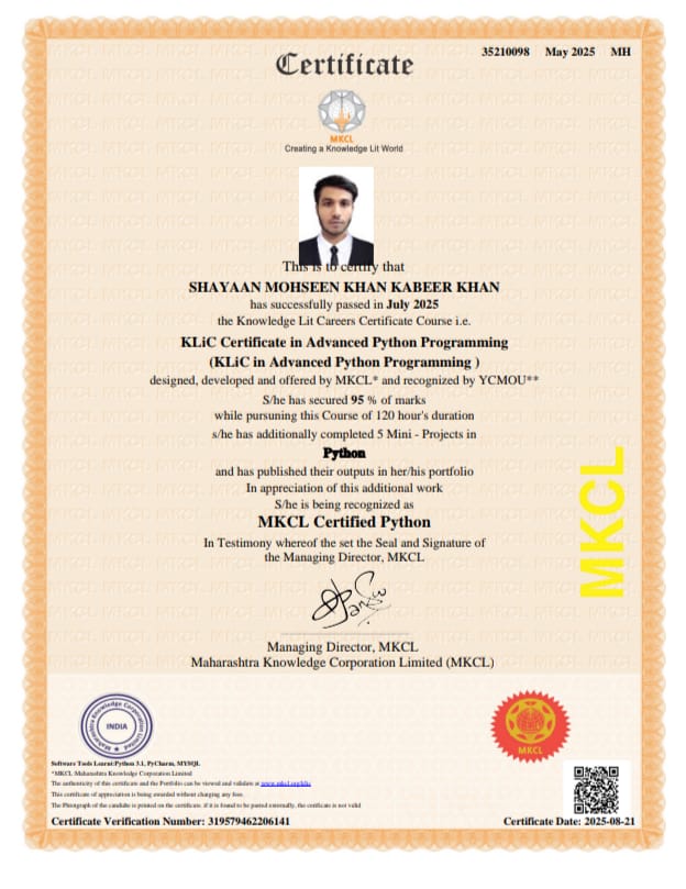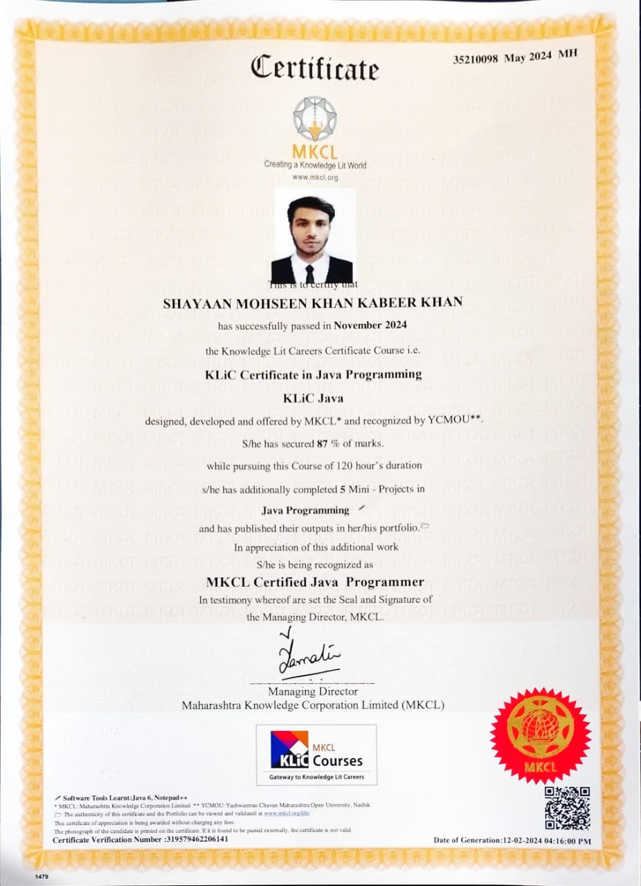 I am a passionate software developer with a Bachelor's degree in Computer Science and multiple certifications from MKCL in Python, Java, and Web Development. My journey in technology began during my college years and has evolved into a deep passion for creating innovative solutions.